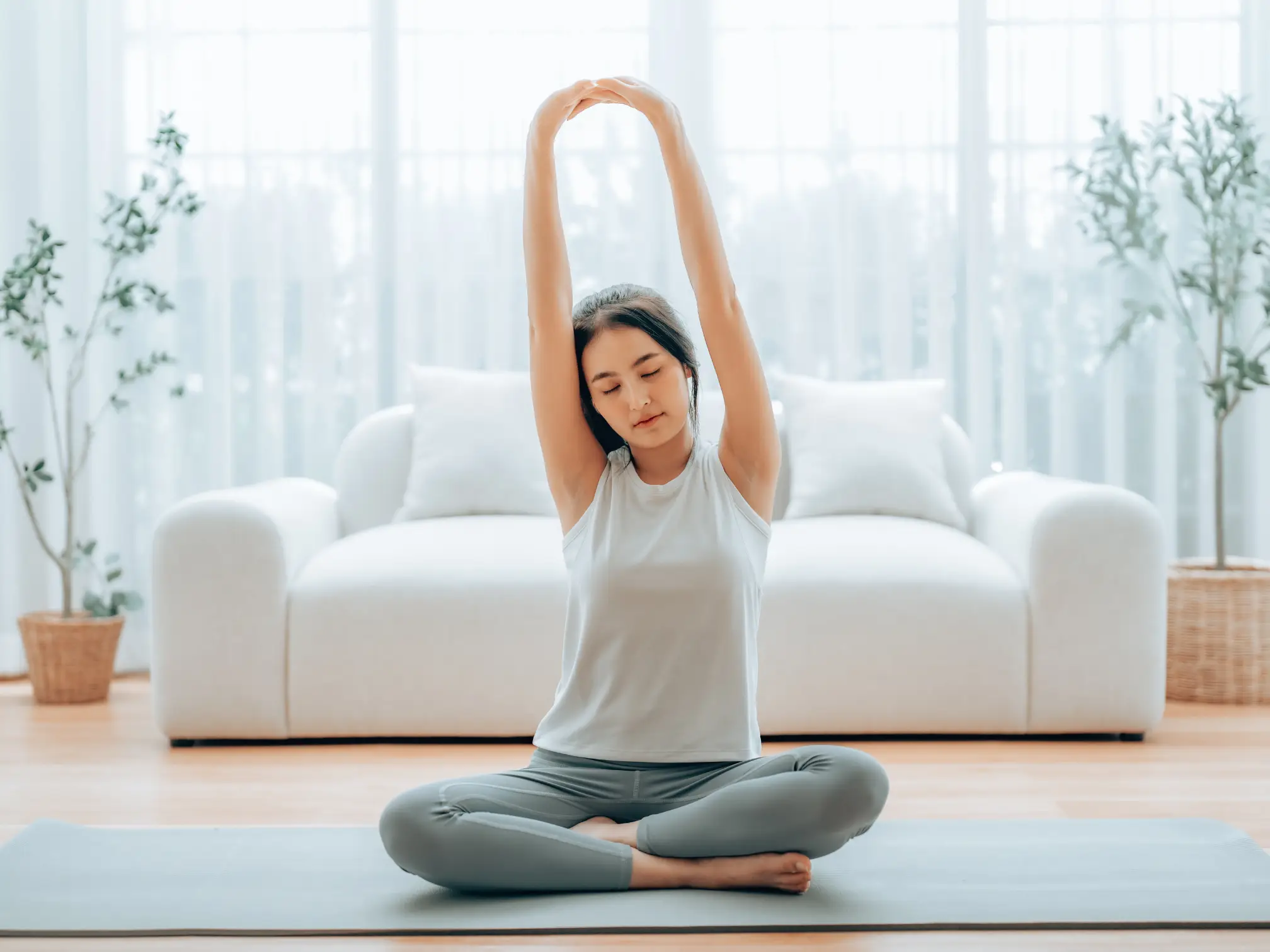 ストレッチ中は、「呼吸」が非常に大切です。とくに深くゆっくりとした呼吸を意識することで、筋肉の緊張が緩みやすくなり、伸ばしたい部位がより効果的に伸びます。緊張していると無意識に呼吸が浅くなりがちですが、深い呼吸をすることで副交感神経を優位にし、身体をリラックス状態に導きます。